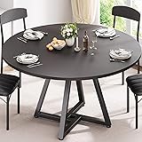 - 42“ Round Kitchen Dining Room Table for 2-4, Circle Dining Dinner Table with Pedestal Metal Frame, Space Saving Wood Industrial Furniture for Small Space (Black, 42IN)