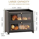 BAMBANG Bread Box for Kitchen Countertop, Extra Large Bamboo Bread Storage Container for Homemade Bread, Double Layer Breadox, Bread Bin Organizer for Counter Cabinet Pantry, Black