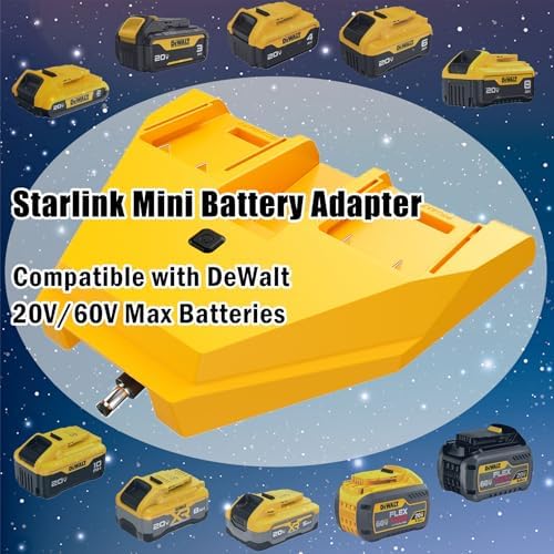 - [Seamless Compatibility with De.Walt Ecosystem]: Designed specifically for connecting a wide range of De.Walt 20V/60V MAX FlexVolt batteries to Starlink mini. If you already own de.walt batteries, you already have a powerful, rechargeable starlink mini power bank.