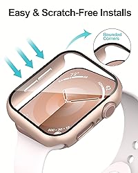 [Compatible Models]: Only compatible with Apple Watch Apple Watch SE 3 (2025)/ SE 2(2024) / SE/ Series 6/ Series5/ Series 4 40mm. Please check your watch’s back for the correct size. [2-in-1 Full Protection]: Durable Hard PC case with built-in 9H+ HD clear tempered glass screen protector, all around protects your Apple Watch 40mm Smartwatch from scratch, bumps, and accidental drops. [Smooth Install, Gentle Edges]: Easy to install and remove. Rounded edges ensure your watch stays scratch-free during swaps. [Easy to Take On & Off]: With precise cutouts for functional buttons and ports, you can easily snap on and take off the case. Do not affect the band insertion or watch charging. [Package Include]: 1-pack Rose Gold Screen Protector Case and 1-pack Transparent Screen Protector Case for Apple watch SE 3 (2025)/ SE 2(2024)/ SE/Series 6/ Series5/ Series 4 40mm, 1 pack of small soft cloth. This case is not waterproof. It is recommended to remove it before swimming or exercising. If moisture gets inside, just take off the case and dry it with a soft cloth.