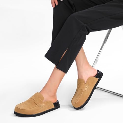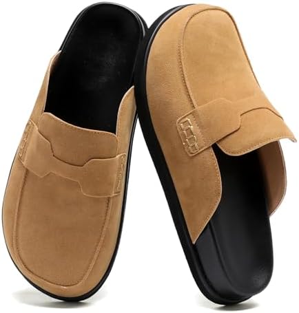 Brown Clogs for Women Comfortable Suede Platform Slip on Backless Closed Toe Mules Womens Clog Slipper Penny Slides Shoes.