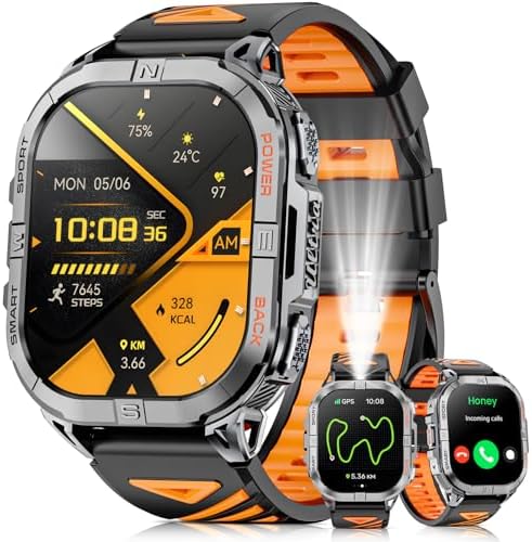 - 🔋【580mAh Large Battery & LED Flashlight】This mens smart watch boasts ultra-low power consumption. Its built-in 580mAh battery, with 2-hour fast charging, providing 50 days of standby time and 5-7 days of regular use, making it ideal for extended outdoor adventures or busy workdays without frequent recharging. High-brightness LED lighting can be turned on with one button in case of emergency at night, so you can still see clearly on outdoor adventures.(Note: Continuous use of GPS or music playback will significantly shorten the watch's battery life)