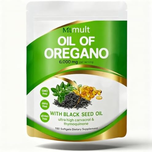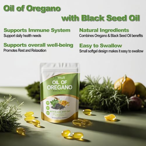 Mtmult Oil of Oregano with Black Seed Oil 6000mg & Moringa, Aceite de Oregano, Oil of Oregano Capsules, Oregano Oil Pills, Carvacrol-Rich, Opaque Airtight Packaging, 180 Softgels