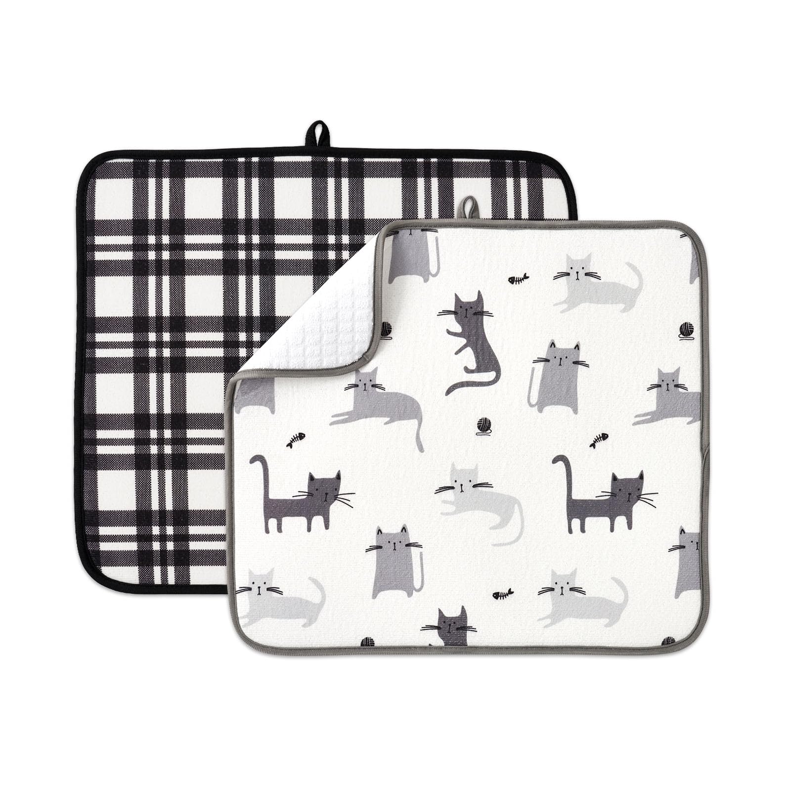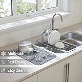 Perfect Size:Dish drying mats for kitchen counter 2-Pack (18""x24"" + 19.5""x12"") fit seamlessly under dish racks, coffee machines, sinks, or cutlery trays. Use the larger mat as a kitchen drying mat for countertops or sinks, while the compact size doubles as a coffee bar mat for espresso stations or small appliances Premium Dish Drying Mat:Crafted with four-layer premium construction (nappa leather fabric surface + regenerated sponge layer + foam absorbent layer + anti-slip rubber base), this dish mat drying kitchen mat withstands daily wear while protecting delicate surfaces like marble or wood from scratches and watermarks. turning mundane kitchen tasks into moments of aesthetic pleasure Rapid Absorption:Absorbent dish drying mat instantly soaks up spills, coffee drips, and dishwater puddles. Its foam core locks moisture away from surfaces, making it a barista-approved coffee mat for countertops and an essential kitchen drying mat for leak-prone areas Easy Storage and Clean:Simply rinse under the tap or machine-wash (air-dry recommended) this reusable kitchen counter mat. Roll it up for compact drawer storage – no bulky racks needed Multi-Functional Lifestyle:More than a dish drying mat for kitchen counter, stabilize pet bowls, line breakfast trays for sofa dining, protect tables during crafts, or use as a non-slip coffee bar mat. Waterproof and stylish enough for open-concept kitchens