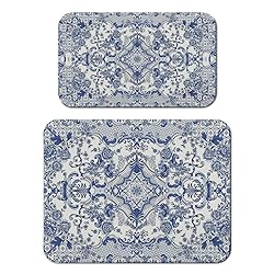 Dish Drying Mat for Kitchen Counter 2 Pack with Non-Slip Rubber Backing - Heat-Resistant Absorbent Coffee Bar Mat, Dish Rack Mat, Blue and White Pattern Dish Drying Mats 18x24+19.5x12 inch