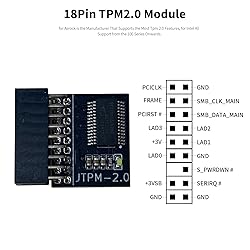 - Specification: Item Type: TPM2.0 Security Module Interface:LPC TPM Version:TPM2.0 Pin Connector:18-1Pin Compatible:for ASROCK TPM2.0 Material: PCB Package List: 1 x 18Pin TPM2.0 Module Note: Universal suitable for ASROCK TPM2.0 18 Pin(18Pin-1) LPC motherboard platform, plz note only motherboards that support TPM2.0 chips can be used. Please recheck the compatibility before making an order. Some motherboards need to plug in the TPM module or update to the latest BIOS to enable the TPM option. Before inserting the module, please turn off the power and find the position of the pin that marked TPM.