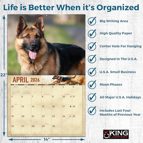 2026 German Shepherds Wall Calendar 16-Month X-Large Size 14x22, Dog Calendar by The KING Company-Monster Calendars