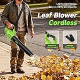 Leaf Blower Cordless, 650CFM Electric Leaf Blowers with 2 x 5.2Ah Batteries and Charger, 3 Speed Modes, 1 x Adjustable Shoulder Strap, Powerful Blowers for Lawn Care, Patio, Dust, Blowing Leaves