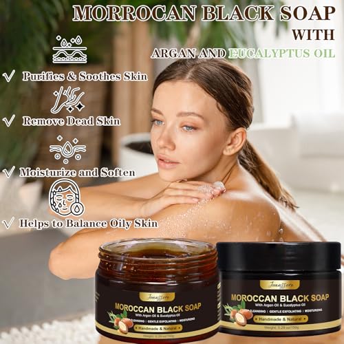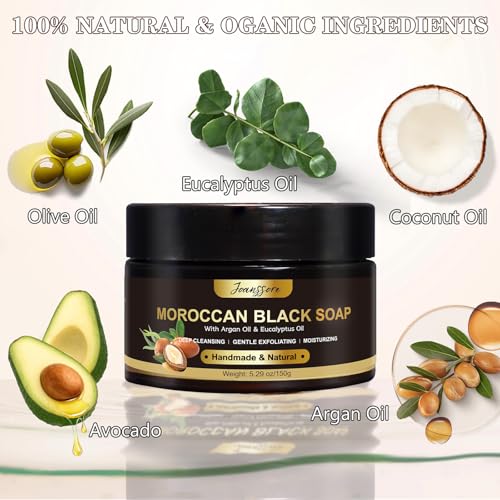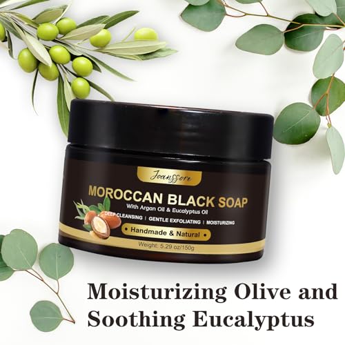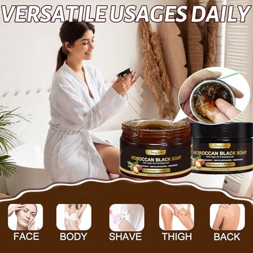 - [Deep Cleansing & Hydration] Our Moroccan Black Soap provides a deep cleanse, gently removing dead skin and impurities. Natural oils hydrate and soften your skin, leaving it feeling refreshed and clean without tightness. Perfect for a daily skincare routine.