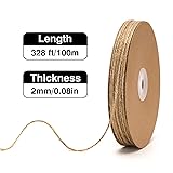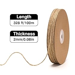 [NATURAL JUTE MATERIAL] – Our natural jute twine string is made of premium natural jute material,no harmful substances,good touch feeling,soft but easy to use,no harm to environment [SOFT BUT STRONG] –328 feet long twine,3 ply 2mm jute twine string,resists fraying and breaking,packed on a cardboard to keep twine neatly stored and more convenient to use,you can cut freely according to the length you want [CRAFTS&GIFT WRAPPING] –Jute twine string for crafts,gifts wrapping,gift tags,wrap around glasses and favors for a wedding or baby shower,decorate wine bottles,rustic and elegant looking craft string [GOOD HELPER IN LIFE] –Brown hemp twine string is strong enough for hanging things,perfect for hanging pictures and charms,christmas tree ornaments,good helper for christmas, birthday, valentines day,mother day gifts [WIDE APPLICATION] –Use the garden twine for yard/garden projects to tie up tomatoes cucumber and other climbing plants to get your harvest