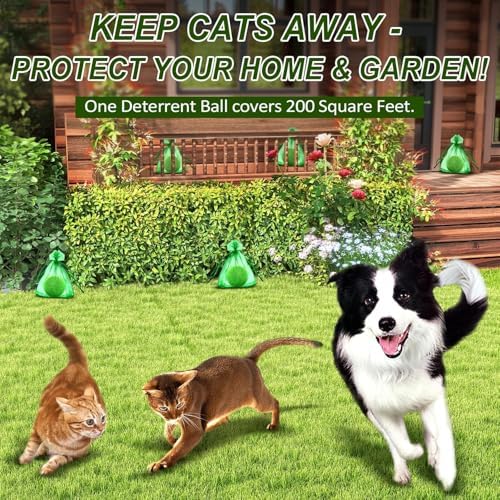 - 🐱Easy to Use: Each package comes with 12 cat & dog deterrent balls plus 5 mesh bags for hanging. One repellent ball covers up to 500 square feet, so you can set up "no-go zones" wherever you need. Simply place the cat repellent balls in the mesh bags and hang them on the railings or place them in the grass to prevent stray cats and dogs from invading.