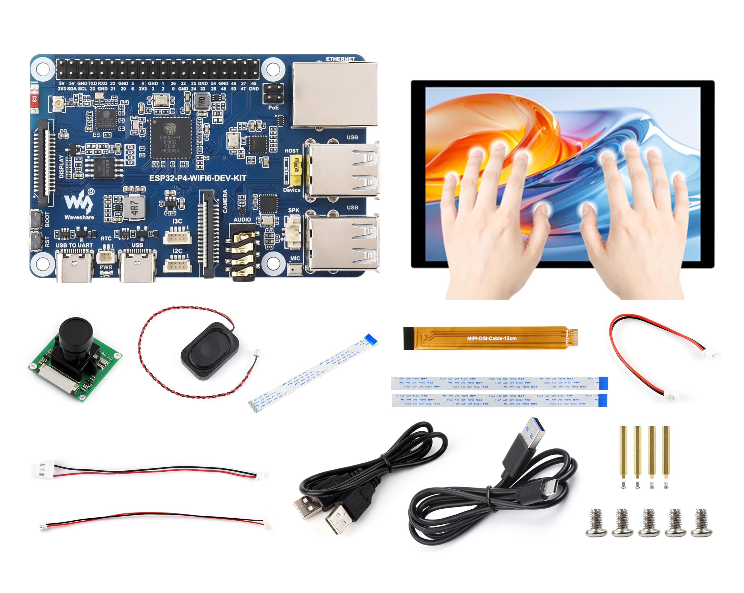 ESP32-P4-WIFI6 Development Board with Pre-Soldered Header, Based On ESP32-P4 and ESP32-C6, Supports Wi-Fi 6 and BLE 5, Supports AI Speech Interaction(with OV5647 Camera and Speaker, 6 Items)