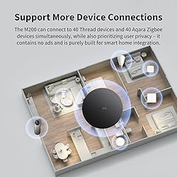 [Multi-Protocol Hub with Matter Bridge] The Aqara Hub M200 is a versatile smart hub that supports multiple advanced features, acting as a Matter Controller, Thread Border Router, and Matter Bridge. It integrates third-party devices into the Aqara Home app. With advanced Matter bridging functionality, it syncs Aqara-exclusive features with ecosystems like Home Assistant, Apple HomeKit, Alexa, and Google Home for seamless integration. Supports up to 40 Aqara Zigbee devices and 40 Thread devices. [Smart IR Blaster with Feedback and Learning] The 360°IR blaster not only sends commands but also provides accurate status updates by detecting traditional remote use. It connects IR air conditioning units to Matter, functioning as an AC thermostat when paired with an Aqara Temperature and Humidity Sensor. (Note: Only one AC device can be exposed to Matter. Functionality may vary based on the Matter integration app. For Apple Home exposure, use Matter integration instead of HomeKit.) [Wired & Wireless Connectivity with PoE Support] Enjoy flexible setup with dual-band Wi-Fi (2.4/5 GHz) using advanced WPA3 security, and Power over Ethernet (PoE), making the M200 a versatile PoE Ethernet Smart Home Hub. The USB-C port supports mini-UPS or power bank connections for uninterrupted operation, ensuring your energy-saving and security automations stay online. (*2A USB power adapter is not included. ) [Home Automation and Alarm System] Works with all Aqara devices to create a comprehensive, smart home automation system. The Aqara Hub M200 is equipped with a built-in speaker that can be used in a variety of ways: security alerts, doorbell, alarm clock, and custom audio messages. (** 𝐍ot third-party 𝐙igbee devices) [Local Automation for Reliable Performance] Supports local execution of automations for Zigbee and Matter devices, ensuring smooth operation even without Wi-Fi or cloud access. Enjoy millisecond response times for a more stable and reliable smart home experience. (Some automation, such as cloud push notifications, will still require the cloud connection to be executed.)