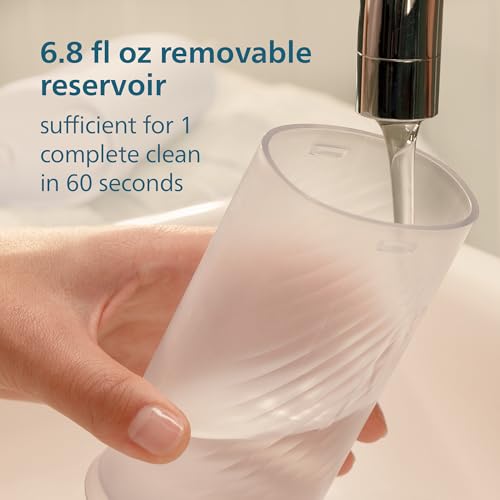 - Cordless convenience: the device is lightweight, slim, portable, and easy to use; the removable reservoir (200 ml / 6.8 fl. oz.) holds enough water for a 1-minute thorough clean without refilling