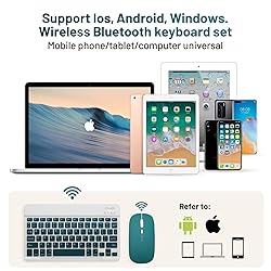 Bluetooth Keyboard and Mouse Combo Rechargeable Portable Wireless Keyboard Mouse Set for Apple iPad iPhone iOS 13 and Above Samsung Tablet Phone Smartphone Android Windows (10 inch Green Hill)