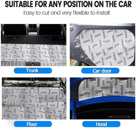 - Universal Fit for All Vehicles:Suitable for any position on the car such as door,hood,trunk,firewall and other parts of the vehicle.Crafted from durable butyl,it outlasts comparable products in the market,ensuring long-lasting effectiveness.80mil thickness optimizes weight noise reduction,very suitable for car enthusiasts,enhance your ride comfort,providing a tranquil space for you in life!