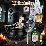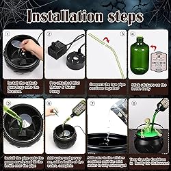 【Halloween Black Witches Cauldron】: Our Halloween cauldron decoration set features potion bottles that appear to float above the cauldron. Hidden stabilizing tubes secure the bottles, and mist overflows from the edges, creating a captivating Halloween atmosphere 【Halloween Decoration Set】: Our plastic witch cauldron (8" x 11") includes instructions, a witch cauldron, a magic bottle, a pump, a mist maker, a splash guard, stickers, green dye, and a skull prop 【Easy Assembly】: Simply follow the instructions, insert the tube and mist maker into the witch's cauldron, add the desired amount of water, and then add a bottle of dyed water. The floating bottle will then float above the cauldron, automatically releasing water and emitting an eerie green light and mist. It looks like a witch's brew is ready, creating a spooky bath scene 【Magical Floating Potion】: Floating potion bottles hover above the cauldron, creating a constant stream of green water, an eerie green glow, and a mysterious mist, filling your space with spooky Halloween magic 【Reusable Cauldron】: This cauldron will be the perfect Halloween touch year after year, creating lasting memories that transcend decoration. Where the ordinary cauldron ends, your magic begins