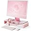 Pink Monitor Stand Riser, Klearlook Foldable, Height Adjustable Computer Stand, Desk Shelf Riser with Storage Drawer &Tablet Phone Stand for Desktop, Laptop