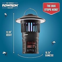 - Transform your outdoor experience with the Flowtron Bug Trap Lantern, the innovative 2-in-1 solution that captures pesky insects while providing bright, reliable lighting. Whether you're hosting backyard gatherings, camping under the stars, or simply enjoying quiet evenings on your patio, this versatile device delivers effective pest control without harsh chemicals or disruptive noise. The scientifically designed UV LED uses optimal 360-400nm wavelength light to attract mosquitoes, flies, gnats, and other flying insects, while the whisper-quiet fan creates gentle suction that draws them into the sealed escape-proof collection chamber below. With an impressive 21000 square feet of coverage, this chemical-free solution protects large areas safely and efficiently. The high-capacity 4000mAh lithium-ion battery ensures exceptional performance with up to 14 hours of lantern use or 10 hours of continuous bug trapping on a single charge, while USB-C charging eliminates the need for special adapters or wall outlets. Three intelligent operating modes provide complete flexibility: adjustable LED lighting with 20%, 50%, and 100% brightness levels for any situation, dedicated trap mode with high and low intensity settings for customized bug control, and the smart Day/Night mode that automatically activates pest protection only after sunset to conserve battery life. The durable, weather-resistant construction makes it perfect for both indoor and outdoor use, from camping adventures and beach trips to garage workshops and basement areas. At less than 3 pounds with a compact 10-inch diameter, it's incredibly portable yet powerful enough to handle serious insect problems. The enclosed design ensures safety around children and pets, with no risk of electrical shock, harmful sprays, or dangerous moving parts - just effective, peaceful bug control that won't interrupt your activities or sleep. Backed by Flowtron's 1-year limited warranty, this bug trap lantern represents the perfect balance of innovation, convenience, and reliable performance for modern pest control needs.