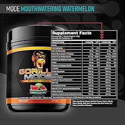 MUSCLE SIZE - Creatine is one of the most widely used and researched ingredients in bodybuilding due to its performance benefits and increase in muscle size. Creatine's impact on muscle size is facilitated by drawing water into the muscle via osmosis, consequently increasing body weight and muscle size. ENHANCED PERFORMANCE - Creatine supplementation will increase the body's phosphocreatine stores, which helps produce ATP during high-intensity exercise. ATP is considered the cell's energy currency and is responsible for muscular contractions, protein synthesis and nerve impulse propagation. With improved energy capabilities, your body will perform better during strenuous exercise. 10000 MG PURE L-CITRULLINE - The ONLY pre-workout in the entire industry featuring the maximum effective dosage of PURE L-Citrulline that IS NOT artificially inflated with Malic Acid on the label (with Citrulline Malate, you're only getting 1/2 - 2/3 as much L-Citrulline as the label implies). The huge spike in Nitric Oxide significantly increases pumps, endurance and can cut DOMS in half after training. 33,000+ MG TOTAL ACTIVE INGREDIENTS - Gorilla Mode is the most potent and comprehensive pre-workout on the market in ALL aspects. Our relentless pursuit of innovation in formulation places us at the cutting edge of potency, with our maxed-out formulas setting new standards in the industry. Pump, strength, drive, endurance, cognitive enhancement, and overall performance all in one. MIXES EFFORTLESSLY AND TASTES INCREDIBLE - Pre-Workout ingredients are notoriously tricky to flavor. Products containing over 30 grams of ingredients often mix horribly and are tough to get down, but not ours. We have carefully selected ingredients like Hydroprime Glycerol that mix effortlessly and included flavor systems that we've personally tested for years. We can confidently say you'll look forward to drinking Gorilla Mode.