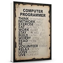 Healthy Mindset Computer Programmer Canvas Art, Vintage Rustic Style Computer Programmer– Eat Well, Work Hard, Relax Often Poster Design, Ready to Hang