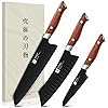 TIVOLI Chef Knife Set, Professional 3PC Santoku Knives Set, High Carbon Steel Ultra Sharp Deep Cooking Knife Set with Ergonomic Wood Handle for Meat Vegetable Fruit, Dad Mom Gift