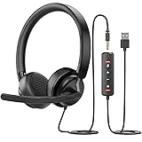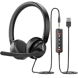 - USB Headset with Microphone for PC, Computer Headset with Noise Canceling Microphone for PC Laptop, in Line Mute Controls, Wired Headset for Work from Home/Office/Call Center/Teams/Zoom