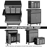 AIRAJ Tool chest is made of durable cold-rolled steel for high strength, and the surface is powder-coated for wear and rust resistance.It can easily store and transport a variety of supplies and tools. Tool chest with wheels - 4 X 1 inch rubber universal wheels to reduce noise when pushing, and the rear wheels are equipped with brake locking devices to make it more stable and safer when parked. Rolling tool chest - features a double-door design, making it easier to access items, and is equipped with a safety door lock, allowing you to store dangerous items and keep them out of the reach of children. Tool chest with drawers - Equipped with 1 large drawer, 3 medium drawers and 3 small parts drawers, you can store items by size and type, making it easier to store and access tools and keep them neatly organized. Instructions for Use - Our packaging uses foam and cardboard boxes to effectively prevent damage during transportation. Note: The top toolbox is placed in the bottom tool cabinet. After removing the toolbox, simply install the wheels and handles to use it. Attention! If you have any questions, please feel free to contact us and we will provide you with satisfactory answers within 24 hours.