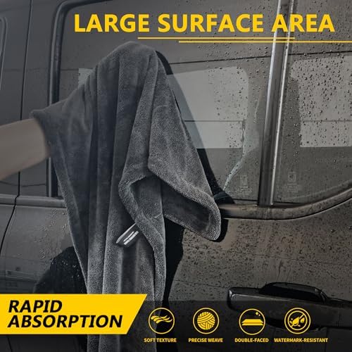 - LARGE SIZE: Premium car drying towel measures 48 x 24 inches, providing extensive coverage for efficient vehicle cleaning and drying,car wash microfiber towel,drying towels car detailing