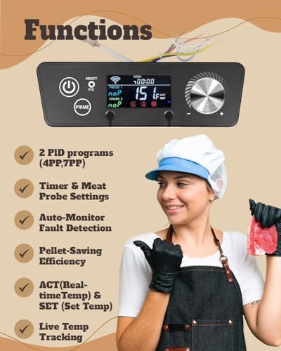 - App Control: this control board is easy to connect to network and manage grilling remotely with your app. such as adjust PID programs, temperature settings, meat probe alerts, smoke levels, timers, and monitor component in any time.
