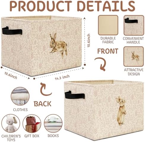 Pink Floral Bunny Nursery Storage Bins, Pastel Wildflower Botanical Rabbit Collapsible Storage Basket Organizer for Kids Girls Bedroom Bathroom Clothes Toys Books, Toybox for Girls
