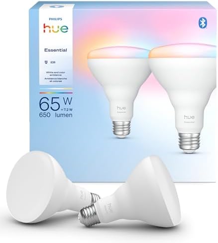 Philips Hue Essential Smart LED BR30 Bulb 2-Pack, White and Color Ambiance, E26, 7.2W, 2200K-6500K, 650 Lumens, Dimmable, Works with Alexa, Google Assistant, Apple Home