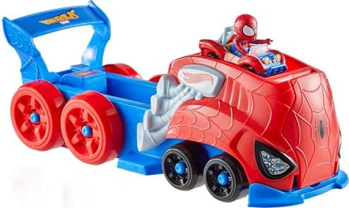 - The large-scale vehicle can haul and store the included die-cast RacerVerse car that features a non-removable Spider-Man figure as its driver.