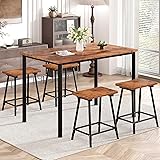 VECELO Kitchen Table and Chairs for 4, Dining Room Set with Chairs/Stools, Heavy-Duty Metal Frame with Wooden Tabletop for Small Spaces, Easy Assembly, Antique Brown