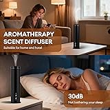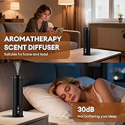 💝Aroma diffuser for home: The waterless scent diffuser starter Kit has a stylish tower design, made of high-quality aluminum alloy. Large capacity of 100ml, enough to last for long time. Whether it is placed in the bedroom, living room, office, yoga studio or hotel, the aromatherapy diffuser can be perfectly integrated into various decoration styles 💝Scent diffuser: Our waterless essential oil fragrance diffusers use cold air diffusion technology to convert aromatherapy essential oils into dry nano mist, allowing the fragrance to diffuse quickly and lastingly and remain for long. Advanced technology makes it residue-free and safe for pets, children, and furniture, creating a healthy living and working space 💝Super strong coverage: The waterless aromatherapy machine has a coverage of up to 1000 square feet, ensuring that the entire space is scented, no need to add water frequently, just add essential oils and enjoy a worry-free experience. The all-metal body effectively says goodbye to operational noise, creating a quiet experience, perfect for both home and office environments 💝Button and Smart remote control: You have 3 ways to control. There are two button buttons to select fragrance concentrations from L1 to L3, and time from 8hr, 12hr to 24hr. And, you can use wireless remote to switch it. Besides, you can download our APP, on which you can easily set exclusive schedules including fragrance levels, timing function and fan. Please refer to the instruction manual for specific details 💝Scent diffuser starter kit: Waterless scent diffuser kit includes 1 diffuser machine, 1 wireless remote control, 2 kinds of scent essential oils(50ml each), manual and 1 USB-C cable. Choose our waterless essential oil diffuser starter kit for a more convenient way to fill your space with fragrance