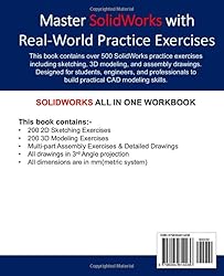 - 📘 SolidWorks All-in-One Workbook – 500+ Practice ExercisesMaster SolidWorks through real-world practice! This all-in-one workbook is your ultimate resource to develop hands-on CAD skills with SolidWorks. Whether you're a student, engineer, hobbyist, or professional, this guide is built to help you gain real design confidence through structured practice. 🔧 What’s Inside this book:✔️ 200 2D Sketching Exercises Build a strong foundation in dimension-based 2D geometry and technical drawing.✔️ 200 3D Modeling Exercises Model real-world parts, from simple shapes to complex components.✔️ Multi-Part Assembly Projects Understand how parts fit together and create full assemblies with detailed drawings.📦 Note from the Publisher:This book combines content from our best-selling titles: ➡️ SolidWorks 200 Exercises ➡️ SolidWorks Assembly Drawings ➡️ 400+ CAD Exercises Collection ...to bring you a complete all-in-one resource at a great value.If you already own one or more of these titles, this bundle offers a convenient way to have everything in one place — with added improvements. 🎯 Why This Book?500+ practice exercises that follow real design standardsIdeal for self-paced learning, classrooms, and technical interviewsPractice-focused approach — learn by doingCovers Sketching, Modeling & Assembly Design in one workbook🖨️ This is the Color Edition – all diagrams and drawings are printed in full color for maximum visual clarity.Published by Cadin360 Learning Tutorials – Trusted by 15,000+ CAD learners worldwide.
