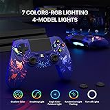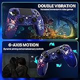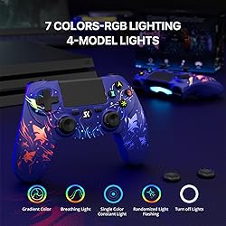 【Cross-Platform Support】 This game controller is compatible with PS4/Pro/Slim, Windows PC, Android, and iPhone/Mac. For the first connection, simply activate the device using a USB data cable to pair and connect to the PS4 console. For other wireless devices, press "Share" + "Home" to activate the controller's Bluetooth pairing mode to connect. 【Long-Lasting Power】 The wireless controller has a built-in 1000mAh battery, providing up to 15 hours of gaming time per charge. It automatically enters sleep mode after five minutes of inactivity, extending battery life and usage time. 【Cool RGB Lighting】 Customize your game controller with dynamic RGB modes. With four cool lighting effects and a unique look, your gift will stand out. Of course, the controller for PS4 supports turning off the lighting completely. 【Immersive Precision Control】The controller features built-in dual vibration motors and six-axis motion sensing, providing precise feedback for racing, action, and sports games. It also features an upgraded joystick with no-drift, a touchpad, a 3.5mm headphone jack, linear triggers, and more. Bundle with Practical Value – Package includes 2 controllers (Black + Purple), 2 USB charging cables, 4 thumb caps, and manuals. The value pack is designed to share the fun, ensuring that little players don't have to wait or argue 【Bundle with Practical Value】Package includes 2 controllers (Black + Purple), 2 USB charging cables, 4 thumb caps, and manuals. The 2pack controller giving two players the freedom to enjoy games together on one console or PC. Ideal for families, siblings, or friends. 【Reliable Support】 Every ISHAKO game controller comes with dedicated customer service. If you encounter any setup or connection issues, Please contact the seller in advance if you have any questions before returning it.. Our support team will swiftly provide solutions to get you back to gaming hassle-free.