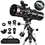 - Complete Accessories & Easy Setup: Includes telescope tube, Equatorial mount, tripod, 2 eyepieces, 2X Barlow lens, red dot finderscope, moon filter, phone adapter, carry bag, and instructions. No tools needed, quick to assemble. Perfect telescope for adults, astronomy beginners, and families to enjoy stargazing together