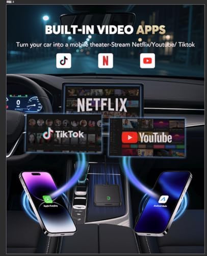 - Smart AI Box: Upgrade your in-car entertainment with this wireless apple carplay adapter. Supporting CarPlay, and built-in video apps, Transform your driving experience into an entertainment hub by streaming your favorite content directly onto your car's display