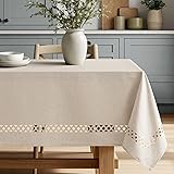 MIULEE Beige Rectangle Linen Polyester Tablecloth with Decorative Cutouts Spring Waterproof Stain Resistant & Shrink-Proof Table Cloth 52x70 inch Farmhouse Style for Dining Wedding and Outdoor