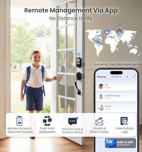 - Built-in Wi-Fi, No Hub Needed: Veise wifi smart lock connects directly to your home Wi-Fi. Instantly lock, unlock, and monitor your door from anywhere with the free App. No hub required, saving time and hassle