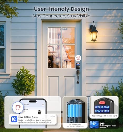 - Long Battery Life & Backlit Keypad: Runs on 8 AA batteries (not included) for twice the usual life. Backlit keypad ensures easy entry in low light, and the App sends early low-battery alerts to prevent lockouts
