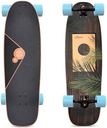 - FUNCTIONAL DESIGN – The Omakase’s generous width maintains a solid and stable feel even on such a compact deck length. A hefty kicktail generates pop, leverage, and control for freestyle tricks and surfy maneuvers. Mild griptape provides cruising comfort and trick execution. Two wheelbase options allow for customized board handling and accommodate standard and reverse-kingpin trucks.
