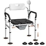 Aluminum alloy HEAVY-DUTY & SAFE DURABLE: This bedside toilet for senior overall use of rust-resistant aluminum alloy material, the frame and four support legs through welding connection, the side of the crossbar reinforcement, making the overall structure more secure and reliable, load-bearing capacity of up to 550 lbs. ADJUSTABLE WIDTH & HEIGHT:This Bedside Commode Chair provide adjustable height (18.5"-23.2") and width (20.5"-22.4"), ensuring a perfect fit for users of all sizes. The raised toilet seat design reduces strain, while the non-slip rubber feet provide extra stability. Ideal for the elderly and those with limited mobility. EXTENDED BUCKET & LEAK-PROOF DESIGN: Equipped with a large-capacity extended bucket (8.5"x 14 x 4.72"), this commode chair prevents spills and odors. The removable bucket makes cleaning effortless, while the secure lid ensures discreet and hygienic use. Perfect for bedside, travel, or post-surgery recovery. The bucket can be slid out forward and backward easily. Tips: This bucket fits a large commode liners. ERGONOMIC SUPPORT FOR SAFETY & COMFORT: Designed for maximum comfort, this commode chair includes armrests and back support for easy sitting and standing. The wide PU soft seat cushion reduces pressure, while the sturdy crossbar frame prevents tipping. A must-have for seniors and disabled individuals. MULTIFUNCTIONAL 3 IN 1 TOILET: Can be used as a shower chair, bedside toilet and raised toilet, this drawer toilet is more convenient to clean and use. Meet the different needs of the elderly, adults, disabled or pregnant women in the bathroom, bedroom or hospital.