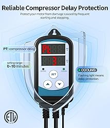 2 Control Modes: DeeprBlu's digital temperature controller features both heating and cooling modes to meet your diverse needs. At the same time, it is equipped with a dual-relay output, allowing for simultaneous connection of both a heater and a cooler, ensuring the target environment stays within the optimal temperature range. Safety and Reliability: The thermostat outlet plug comes with a compressor delay function, which allows for easy, hassle-free connection of the device with a compressor. You won't need to worry about damaging the motor due to frequent startups of air conditioners and refrigerators. Safety is always a top priority, all designed to deliver you an excellent user experience! Precise Temperature Adjustment: This thermostatically controlled outlet has a temperature control range from -58°F to 248°F and a resolution of 0.1°F, allowing you to precisely control the temperature. Additionally, it is equipped with a 6-ft waterproof NTC sensing probe to provide accurate temperature readings over a wide range. More professional equipment, just to help you regulate the environmental temperature more accurately. Excellent Use Design: Our thermostat socket features dual wall mount holes for both the display and the socket itself, so you don't have to struggle with a tangled mess of wires. The large LED dual readout screens allow you to quickly and clearly view real-time and target temperature values. This thermostat is carefully designed for your easy and intuitive reading and operation. Versatile Applications: This plug in thermostat can be widely used in your daily life. Its excellent stability allows it to work reliably across scenarios like seed germination, home brewing, attic fan control, reptile glass tanks, aquariums, greenhouse planting, and chick hatching. One device, multiple uses—it is helping you create an ideal temperature environment year-round.