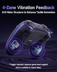 Quiet-Touch Low-Noise Buttons – Full-button structure rebuilt with silicone dampers for ultra-quiet operation. Perfect for late-night gaming on your pc controller setup without disturbing family, roommates, or neighbors. Dual-Stage Impulse Triggers – Adjustable trigger lock for long or short travel, paired with 2+2 built-in rumble motors for realistic recoil, drift, and collision feedback. Ideal for pc gaming controller users who want immersive racing or FPS experiences. Programmable Buttons – Two extra customizable buttons placed on the top of the controller to avoid accidental touches, solving the common problem of mis-presses on back paddles. Hall Effect Joysticks + 1000Hz Polling Rate – High-precision 11-bit sensors deliver drift-free accuracy and long-lasting durability. Wired & 2.4G wireless controller pc modes support 1000Hz ultra-fast response, while bluetooth controller pc mode offers 125Hz for mobile or casual gaming. Ergonomic Skin-Like Grip + Long Battery Life – Soft-touch silicone coating provides a sweat-resistant, non-slip hold for marathon sessions. Built-in 1000mAh rechargeable battery ensures long-lasting play, making it one of the most reliable steam controller for pc alternatives with stylish rgb controller pc lighting. Upgraded 8-Way D-Pad – Reengineered with dome switches and a recessed pivot, supporting smooth diagonal input and precise 8-direction control. The perfect gaming controller for pc players who enjoy fighting and retro titles. Multi-Platform Compatibility – Works seamlessly with Windows PC, Nintendo Switch / Switch 2, Android, and iOS. ❌ Not compatible with Xbox or PlayStation consoles.