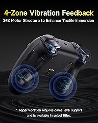 Multi-Platform Compatibility – Works seamlessly with Windows PC, Nintendo Switch / Switch 2, Android, and iOS. ❌ Not compatible with Xbox or PlayStation consoles. Quiet-Press Buttons – Full-button structure rebuilt with silicone dampers for ultra-quiet operation. Perfect for late-night gaming on your pc controller setup without disturbing family, roommates, or neighbors. Dual-Stage Impulse Triggers – Adjustable trigger lock for long or short travel, paired with 2+2 built-in rumble motors for realistic recoil, drift, and collision feedback. Ideal for pc gaming controller users who want immersive racing or FPS experiences. Programmable Buttons – Two extra customizable buttons placed on the top of the controller to avoid accidental touches, solving the common problem of mis-presses on back paddles. Hall Effect Joysticks + 1000Hz Polling Rate – High-precision 11-bit sensors deliver drift-free accuracy and long-lasting durability. Wired & 2.4G wireless controller pc modes support 1000Hz ultra-fast response, while bluetooth controller pc mode offers 125Hz for mobile or casual gaming. Ergonomic Skin-Like Grip + Long Battery Life – Soft-touch silicone coating provides a sweat-resistant, non-slip hold for marathon sessions. Built-in 1000mAh rechargeable battery ensures long-lasting play, making it one of the most reliable steam controller for pc alternatives with stylish rgb controller pc lighting. Upgraded 8-Way D-Pad – Reengineered with dome switches and a recessed pivot, supporting smooth diagonal input and precise 8-direction control. The perfect gaming controller for pc players who enjoy fighting and retro titles.