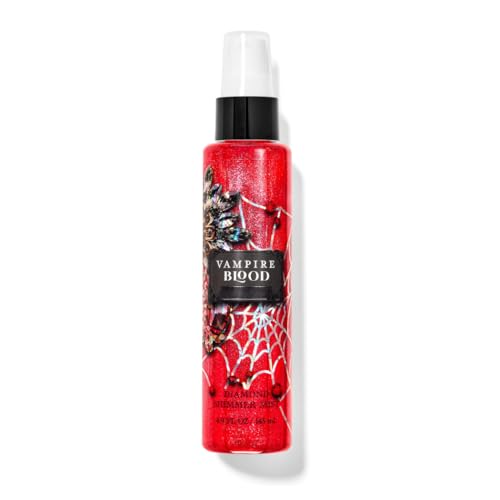 Vampire Blood Diamond Shimmer mist. What it does: kisses skin with irresistible fragrance and gorgeous sparkle. What it smells like: equal parts fruity, floral, and frightful. Fragrance notes: red berries, night-blooming jasmine, and petrifying plum. Packaging label artwork styles may vary. See images for variations in packaging label styles if applicable. Only one (1) variation is included per order.