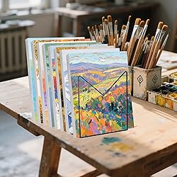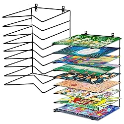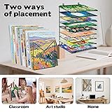 Capacity & Sizes: You will receive 2 art drying racks (10.5"L x 7"W x 7"H, 1.2" between each tier), each with 9 sturdy shelves, providing a total of 18 layers for organizing artwork. Perfectly fits 5x7, 8x10, 9x12, and 11x14 inch boards or small art paper, ideal for students, hobbyists, and professional art studios. Wall Mount Art Drying Rack: Designed as a wall-mounted art drying rack to save valuable workspace. Includes installation hardware for quick setup, allowing paintings, drawings, and craft projects to dry neatly on the wall without cluttering desks or countertops. Desk Stand Paint Drying Rack: It can also be placed directly on a desk or tabletop, working as a compact drying rack for art classrooms or home use. Easily move it from room to room, keeping painting storage flexible, organized, and convenient for daily projects. Dur-able Iron Construction: Crafted from high-quality iron with rust-resistant coating, this art drying rack is built to last. Strong, heavy-duty, and stable for long-term use, offering reliable support for wet paintings, sketches, and creative projects. Classroom & Studio Organization: This paint drying rack is excellent for high-volume drying needs in schools, art studios, or workshops. Keep multiple art projects flat, wrinkle-free, and protected, supporting efficient art supply storage and management.
