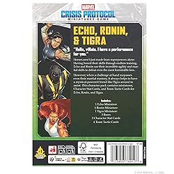 ADD AGILITY AND MYSTICAL POWER TO YOUR TEAM: This pack introduces Echo, Ronin, and Tigra—heroes who combine martial mastery, hit-and-run tactics, and mystical feline strength. VERSATILE CLOSE-COMBAT FIGHTERS: Echo excels in surprise attacks and mobility, Ronin dominates with powerful martial arts skills, and Tigra brings ferocious strength and reflexes to overpower enemies. EXPAND YOUR MARVEL: CRISIS PROTOCOL ROSTER: Perfect for players who want to add dynamic, close-range combatants that excel at controlling the battlefield. INCLUDES HIGHLY DETAILED MINIATURES AND CARDS: Comes with three detailed character miniatures, unit cards, and tactical cards for seamless gameplay integration. ENHANCE YOUR STRATEGIC OPTIONS: These characters provide new tactical playstyles focused on mobility, melee combat, and mystical abilities, adding depth to your battles.